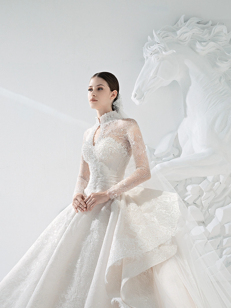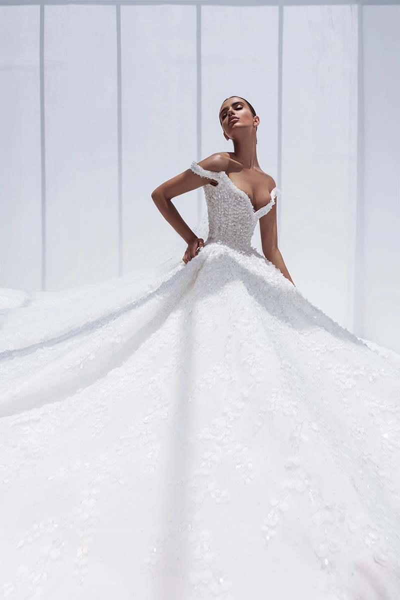 Captivating with its radiance, the luxurious collection of bridal gowns inspired by Michael’s celebration of love. Discover the enchanting dresses every beautiful bride dreams of. Celebrating bridal femininity with majestic gowns for your big day, designs that are truly astounding.